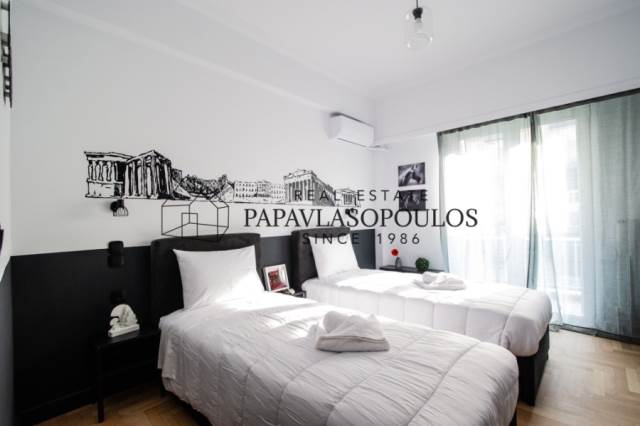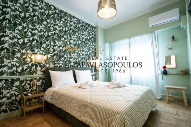 Athens, Pagrati, Apartment For Rent, 78 sq.m., Property Status: Refurbished, Floor: 3rd, 2 Bedrooms 1 Kitchen(s), 1 Bathroom(s), View: Cityscape, Energy Certificate: B, Floor type: Wooden floors, Type of doors: Aluminum, Features: Elevator, Security door, Electric Appliances, Double Glazed Windows, Balcony Cover, Furnished, Luxury, Roadside, Bright, AirConditioning, Painted, Renovated, Price: 1.100€. Papavlasopoulos Real Estate since 1986, Tel: 2106461211, 6970205205, email:
