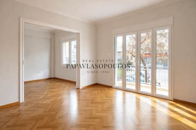 In Pangrati, in an excellent location within short distance of the Evangelismos Metro Station, an elegant, fully and luxuriously renovated apartment of 101 sq.m. is available for rent on a high first floor. The property features an entrance hall, a spacious living room and a separate dining area divided by sliding doors, two large bedrooms, an independent kitchen, a main bathroom and a WC. Within the apartment there is an additional storage space currently arranged as a laundry room, as well as a second small storage unit in the basement. The apartment is exceptionally bright with an open outlook, offering a sense of space and comfort. It features polished wooden floors, new aluminum window frames, air-conditioning units in all main areas and a security door. This is a refined and high-quality residence situated in one of Athens’ most sought-after and safe neighborhoods, ideal for those seeking a central location combined with timeless character and elegance. Papavlasopoulos Real Estate since 1986T. 2106461211,