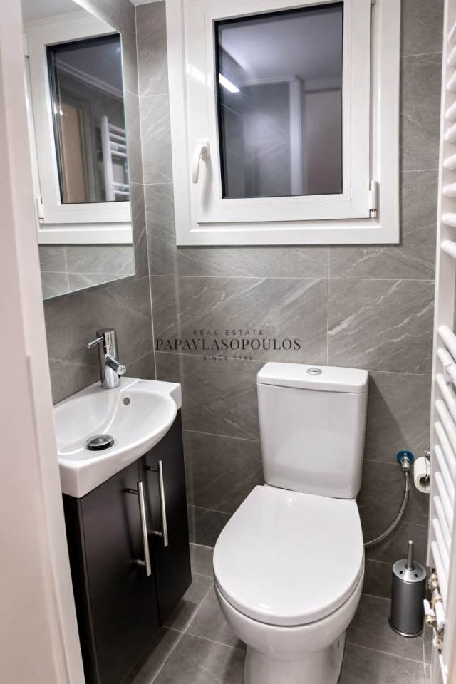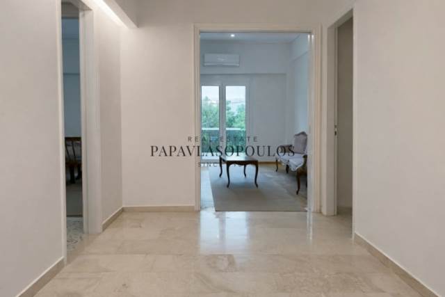 Exarchia near the square, 97 sq.m. apartment on the 1st floor, fully and luxuriously renovated with high-end materials. It consists of a entrance hall, living room, dining room, separated kitchen with electrical appliances, 2 bedrooms, bathroom, wc and storage room. Also suitable for commercial use. It features thermally insulated windows, security door, air conditioners in all areas, polished floors.
