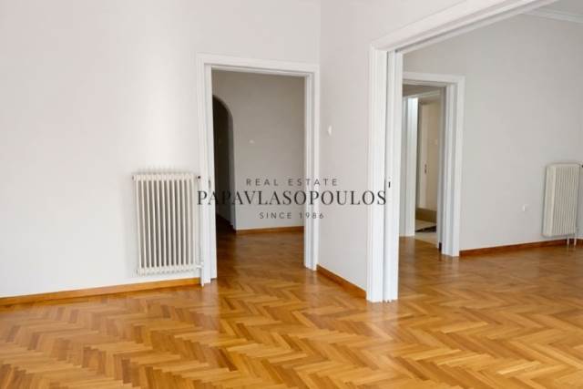 In Pangrati, in an excellent location within short distance of the Evangelismos Metro Station, an elegant, fully and luxuriously renovated apartment of 101 sq.m. is available for rent on a high first floor. The property features an entrance hall, a spacious living room and a separate dining area divided by sliding doors, two large bedrooms, an independent kitchen, a main bathroom and a WC. Within the apartment there is an additional storage space currently arranged as a laundry room, as well as a second small storage unit in the basement. The apartment is exceptionally bright with an open outlook, offering a sense of space and comfort. It features polished wooden floors, new aluminum window frames, air-conditioning units in all main areas and a security door. This is a refined and high-quality residence situated in one of Athens’ most sought-after and safe neighborhoods, ideal for those seeking a central location combined with timeless character and elegance. Papavlasopoulos Real Estate since 1986T. 2106461211,